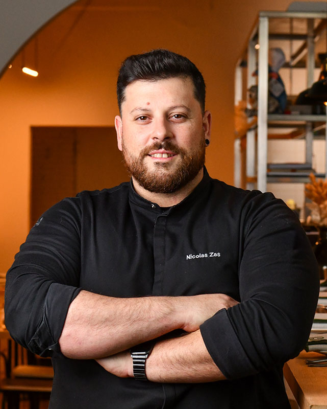 Formado en la exigencia de la alta gastronomía, su propuesta no busca el artificio, sino la verdad del producto y la emoción del recuerdo. Cada plato nace de una investigación profunda en torno al terruño, las técnicas de fermentación y la estacionalidad, y se expresa en un lenguaje contemporáneo, sincero y lleno de carácter. En sala, Nicolás no se esconde: se acerca a las mesas, comparte su pasión y abre al comensal la puerta a su universo culinario. Para él, cocinar es un acto de hospitalidad y memoria, un puente entre orígenes y presente.